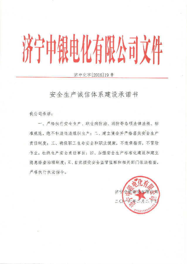 2016年2月20日《安全生产诚信体系建设承诺书》……